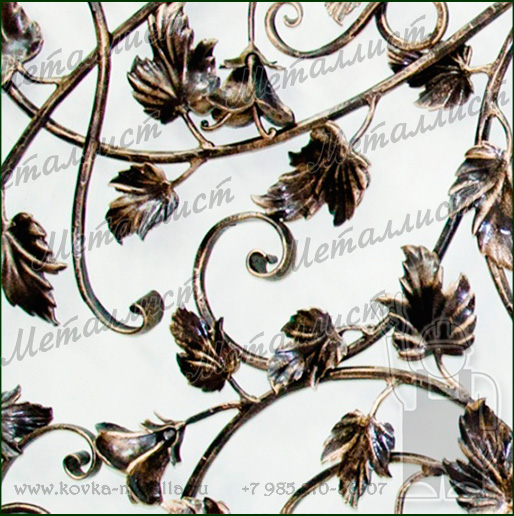 - На многих изделиях художественной ковки в стоимости уже предусмотрено наличие фактуры, как неотъемлемой части стиля. Например: виноградная лоза или "дуб" в перилах, решетках, панно...