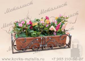 Кронштейн для цветочных ящиков, кованое изделие с предусмотренным креплением на перила.