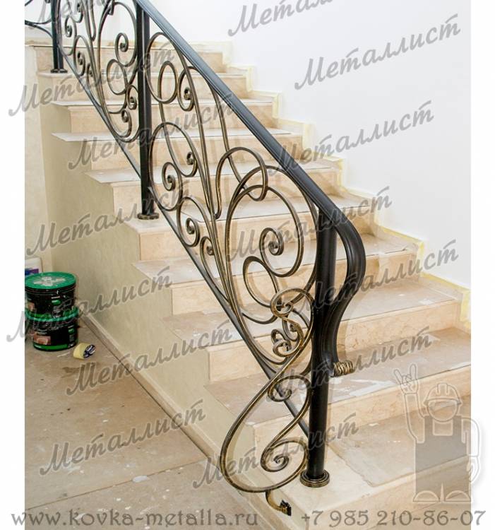 Столбы различной конфигурации, цельнометаллический или деревянный поручень, различная фактура материала. Любые дополнения и изменения рисунка по Вашим пожеланиям.