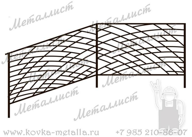Столбы различной конфигурации, цельнометаллический или деревянный поручень, различная фактура материала. Любые дополнения и изменения рисунка по Вашим пожеланиям.