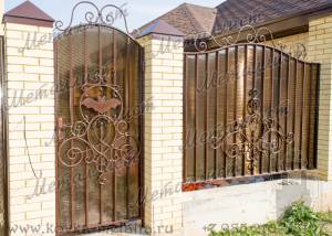 Недорогие листовые кованые ворота и калитка с накладной ковкой.