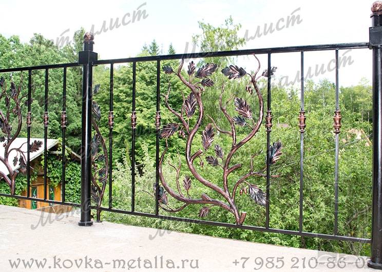 Столбы различной конфигурации, цельнометаллический или деревянный поручень, различная фактура материала. Любые дополнения и изменения рисунка по Вашим пожеланиям.